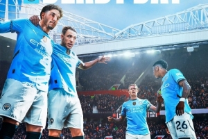 曼城官方账号配文:“今天是德比日,加油曼城!”